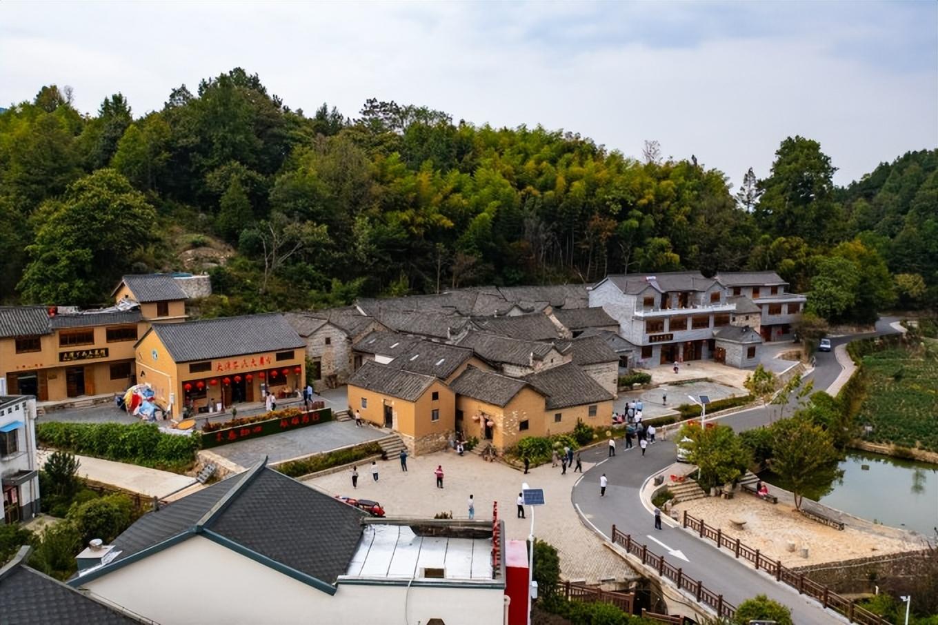 如今来到大湾村参观的游客越来越多。下面这张航拍图或许可以很好地诠释大湾村的一些变化。偏上方黄土色的是经过一些翻修的老房子,下面白墙灰瓦的小别墅是如今村民的住所。